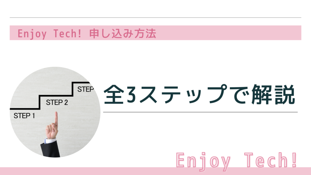 具体的なEnjoy Tech! 申し込み方法を、初めての方でも迷わないように3つのステップに分けて詳しく解説していきます。