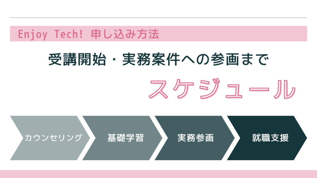 「Enjoy Tech! 申し込み方法」を確認して予約を済ませた後、具体的にどのような流れでエンジニアへの道を歩むことになるのか、その全体像を把握しておきましょう。